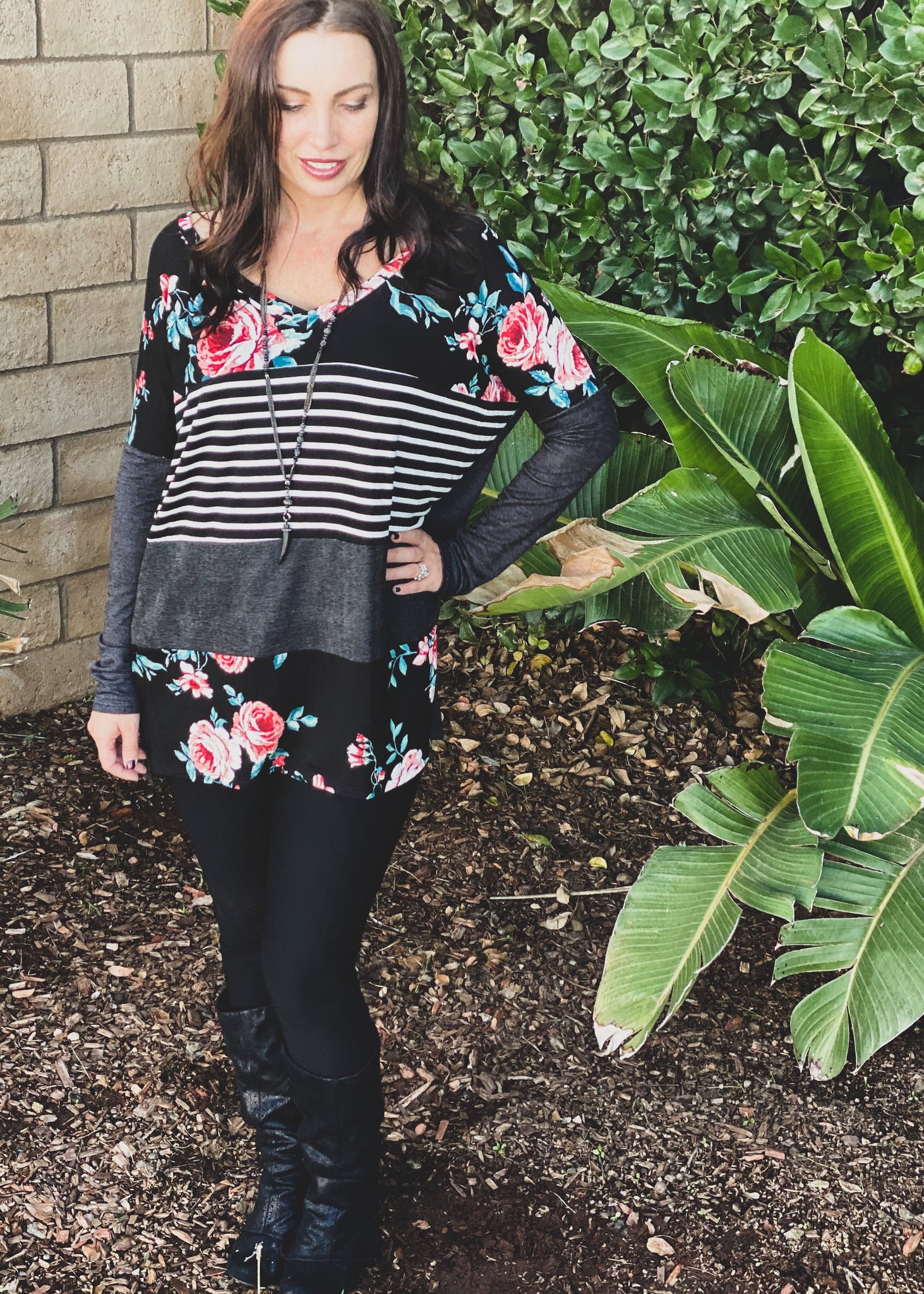 This gorgeous color block long sleeve tee will have you wanting more! Featuring a relaxed fit, long sleeves and v-neck, this top will sure be your next go to!